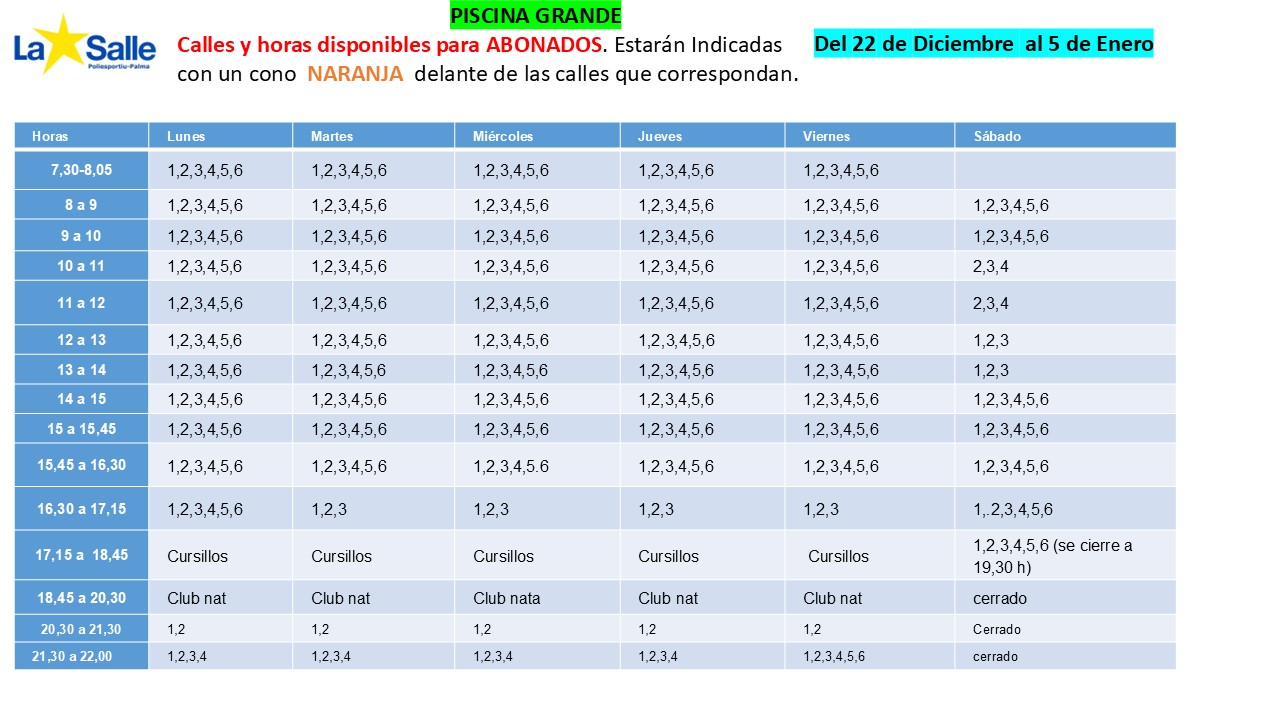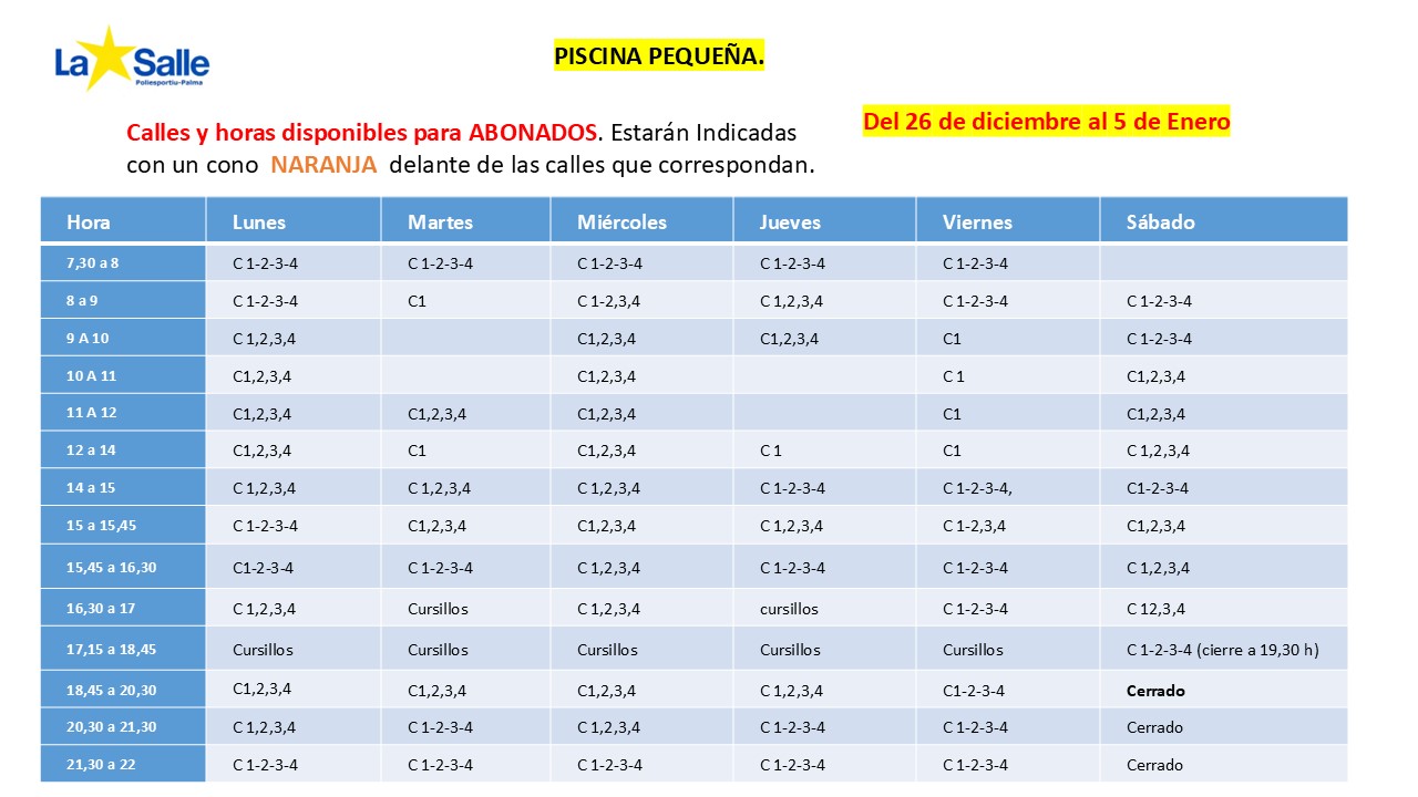 CALLES Y HORAS DISPONIBLES PARA LOS ABONADOS.